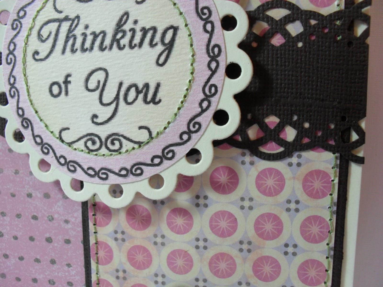 I used the latest challenge sketch from sketchandstashchallenge.blogspot.com which made this card come together really quickly and easily.......definitely unusual for Mrs.-takes-ages-to-decide-then-get-crackin' here, lol........I used a white card base, then layered up some My Mind's Eye cutey papers, which of course I had to do some hand=stitchin' on, lol......